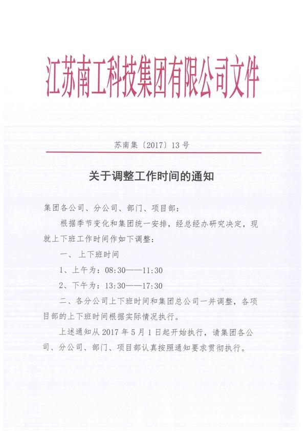 关于调整工作时间的通知