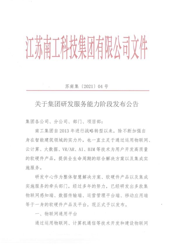 关于集团研发服务能力阶段发布公告