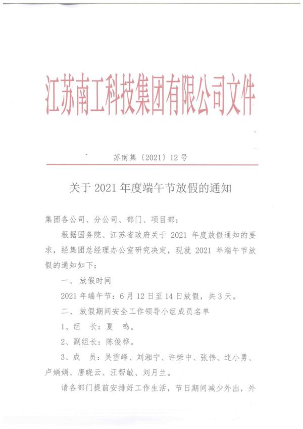 您的位置:集团首页 >> 新闻中心 >> 集团公告 >> 关于2021年度端午节放假的通知