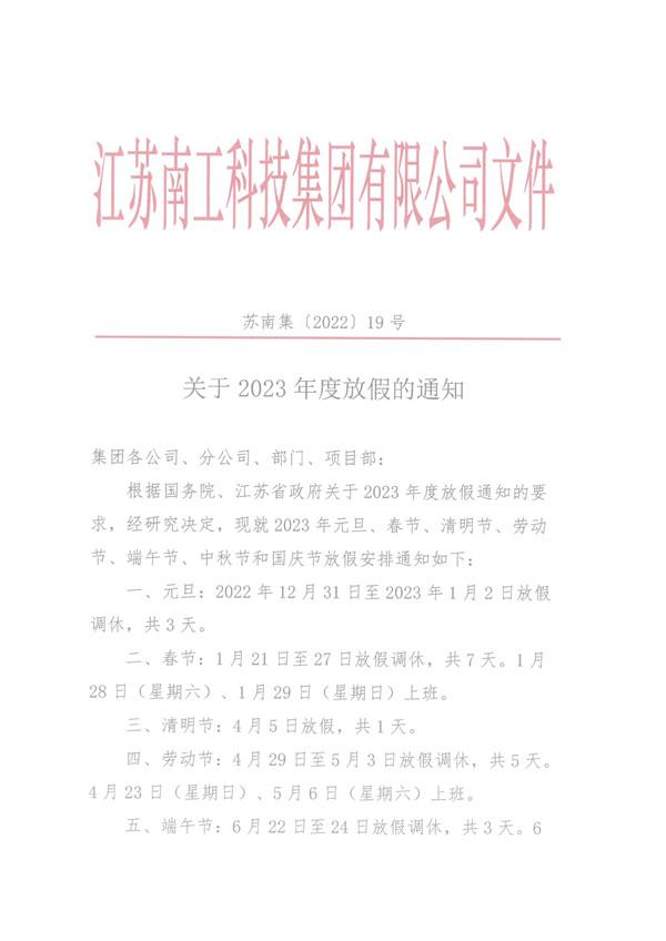您的位置:集团首页 >> 新闻中心 >> 集团公告 >> 关于2023年度放假的通知