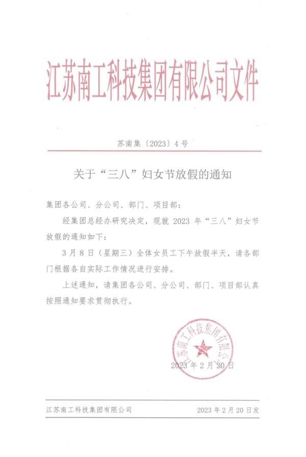 关于“三八”妇女节放假的通知