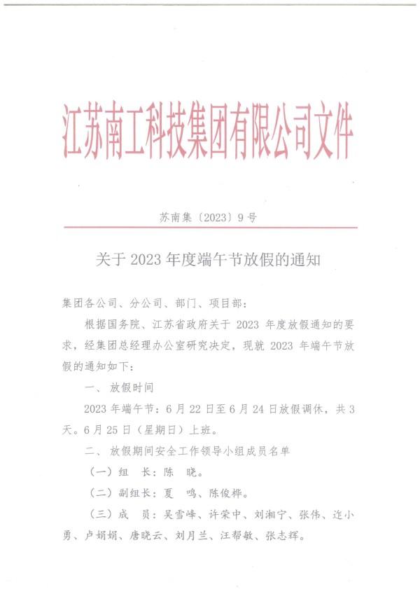 您的位置:集团首页 >> 新闻中心 >> 集团公告 >> 关于2023年度端午节放假的通知
