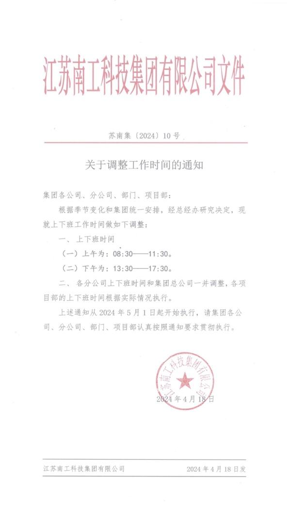 关于调整工作时间的通知