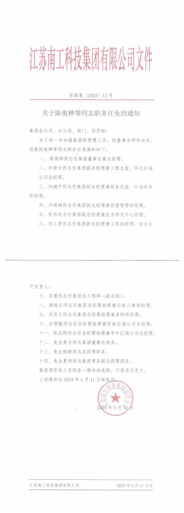您的位置:集团首页 >> 新闻中心 >> 集团公告 >> 关于陈俊桦等同志职务任免的通知