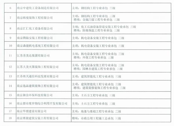 关于公布南京市2014年第一批核准的由市级建设主管部门许可资质的建筑业企业名单的通知