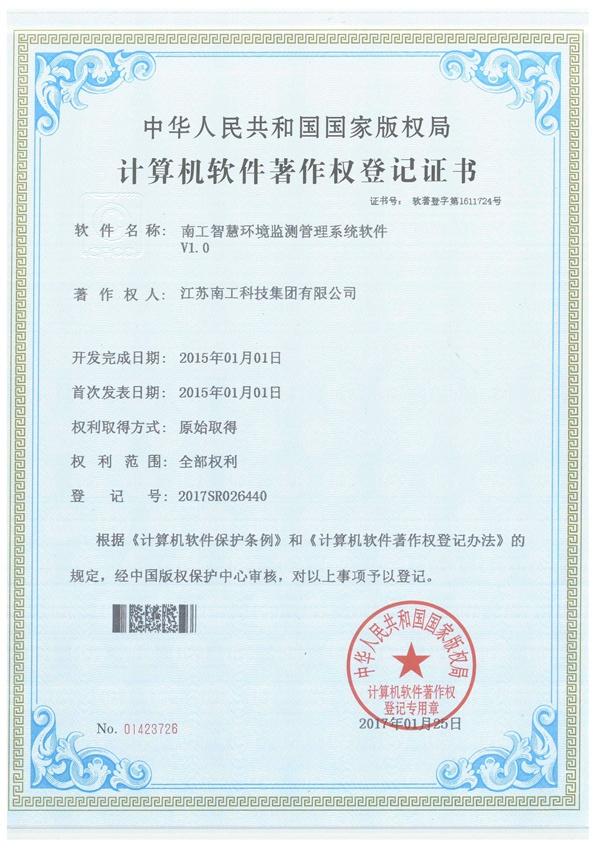 3499拉斯维加斯官网智慧环境监测管理系统软件证书